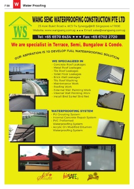 OUR ASPIRATION IS TO DEVELOP FULL WATERPROOFING SOLUTION Ah Qi Trading (p 4/5) Hoe Win Plumbing (p 31) Plant Connextion (p 8/9) The Living Age (p 21)