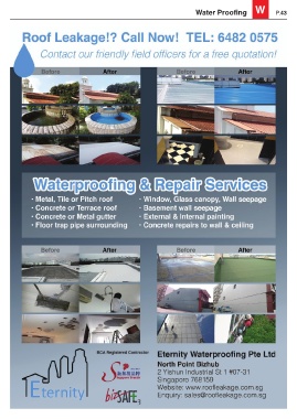 W W P.42 Water Proofing Water Proofing P.43 50 Serangoon North Avenue 4 #04-20 First Centre Singapore 555856 Tel: 6278 4484 | Fax: 6272 4484 | Email: b4_wls@yahoo.com.sg