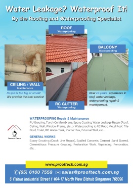 ✆  (65) 6100 7558         ✉   sales@prooftech.com.sg                          Waterproofing • Painting • Grouting • Ceiling • Leakage